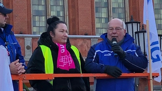 „Bleibt es bei dem miesen Stil, steh‘n nicht nur in Berlin die Räder still!“ kündigte er weitere Streiks und Proteste an. Dabei berichtete er von etlichen Großveranstaltungen in deutschen Großstädten, die die hohe Kampfbereitschaft der Beschäftigten gezeigt haben.
