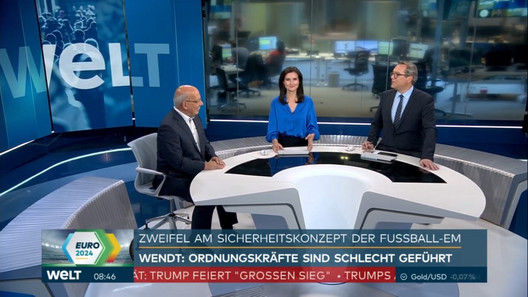 Über die aktuelle Sicherheitslage während der Heim-EM spricht Rainer Wendt, Bundesvorsitzender der Deutschen Polizeigewerkschaft, bei WELT TV.