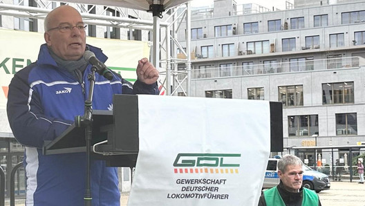 In Vertretung des dbb Bundesvorsitzenden Ulrich Silberbach hat der DPolG Bundesvorsitzende Rainer Wendt bei einer Protestdemonstration anlässlich des Warnstreiks der Gewerkschaft Deutscher Lokomotivführer (GDL) in Berlin die Solidarität der dbb Mitgliedsgewerkschaften überbracht und in einer kämpferischen Rede dazu aufgerufen, sich nicht in die Knie zwingen zu lassen: